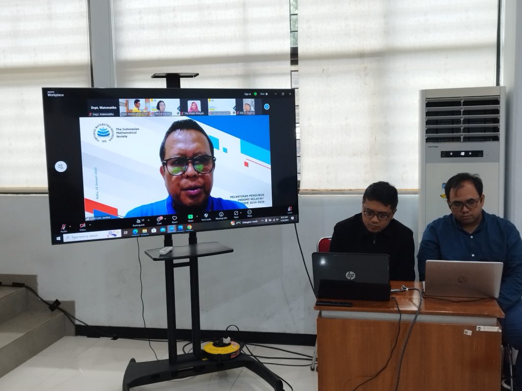 Late post. On Friday, January 24, 2025, the election of the Governor of the Indonesian Mathematics Society (IndoMS) for the West Java, Jakarta and Banten regions was held at the Department of Mathematics, University of Indonesia, Depok campus in a Hybrid manner. Starting the discussion activity for the election of the IndoMS governor for the West Java, Jakarta and Banten regions for the 2025-2026 period was a welcome speech delivered by the Head of the Mathematics Department, FMIPA UI, Prof. Alhadi Bustamam, S.Si., M.Kom., Ph.D., followed by a speech by the governor of IndoMS for the 2023-2024 period, Prof. Dr. Ir. Endar Hasafah Nugrahani, M.S. The activity was opened by the President of IndoMS for the 2025-2026 period, namely Prof. Drs. Dafik, M.Sc, Ph.D., online.