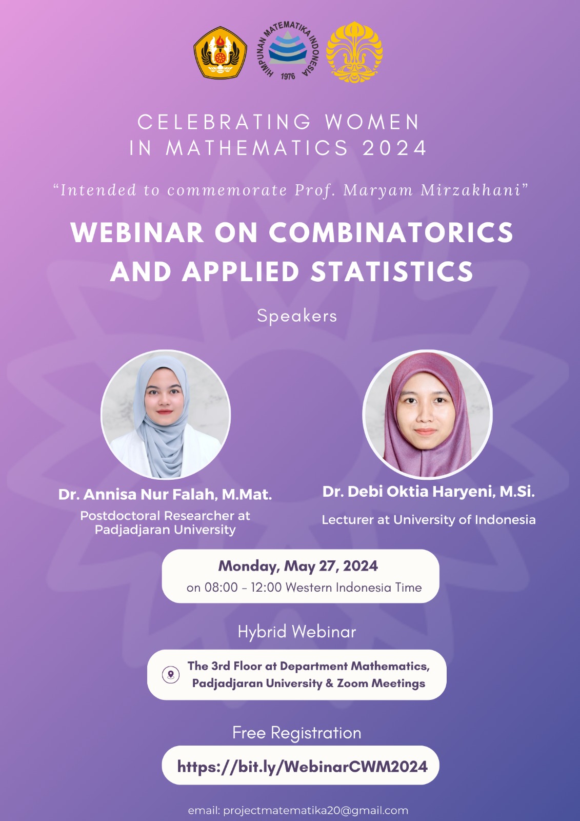Dalam rangka memperingati perayaan Intenational Woman in Mathematics Day yang dirayakan setiap tanggal 12 Mei untuk mengenang penerima Field Medal wanita yang pertama, Maryan Mirzhakani, Departemen Matematika UNPAD dan Departemen Matematika UI menyelenggarakan acara webinar ini dengan pembicara adalah matematika wati muda Dr. Annissa Nur Falah dari UNPAD dan Dr. Debi Oktia Haryeni dari UI. Acara ini merupakan kelanjutan kerjasama UI-UNPAD yang sudah dimuali sejak tahun 1990.